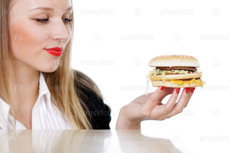 Женщина с гамбургером в руке