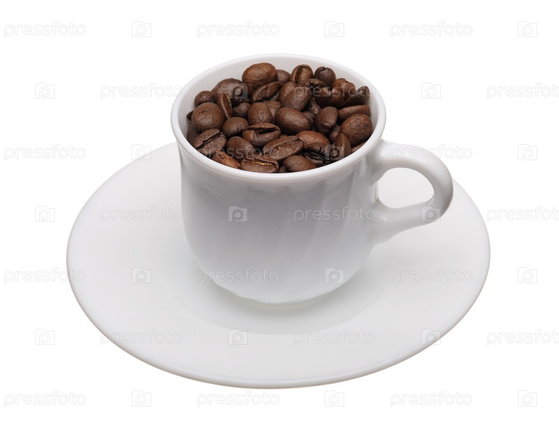 Белая чашка с кофейными зернами
