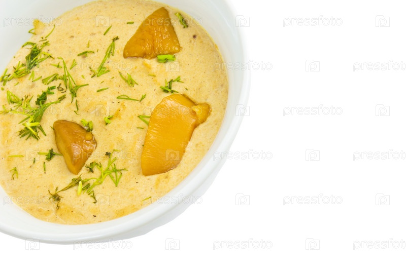 Грибной суп, изолированный на белом фоне