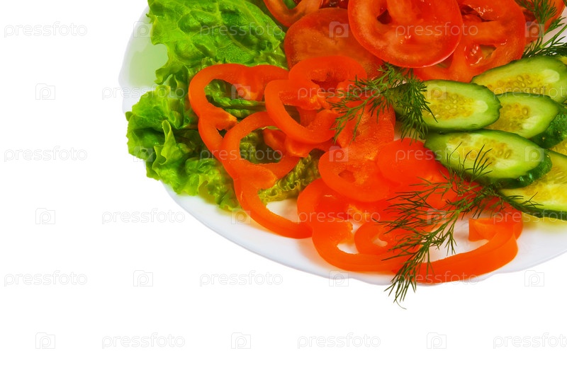 Вкусная нарезка из огурцов и помидоров, изолированная на белом фоне с путем отсечения