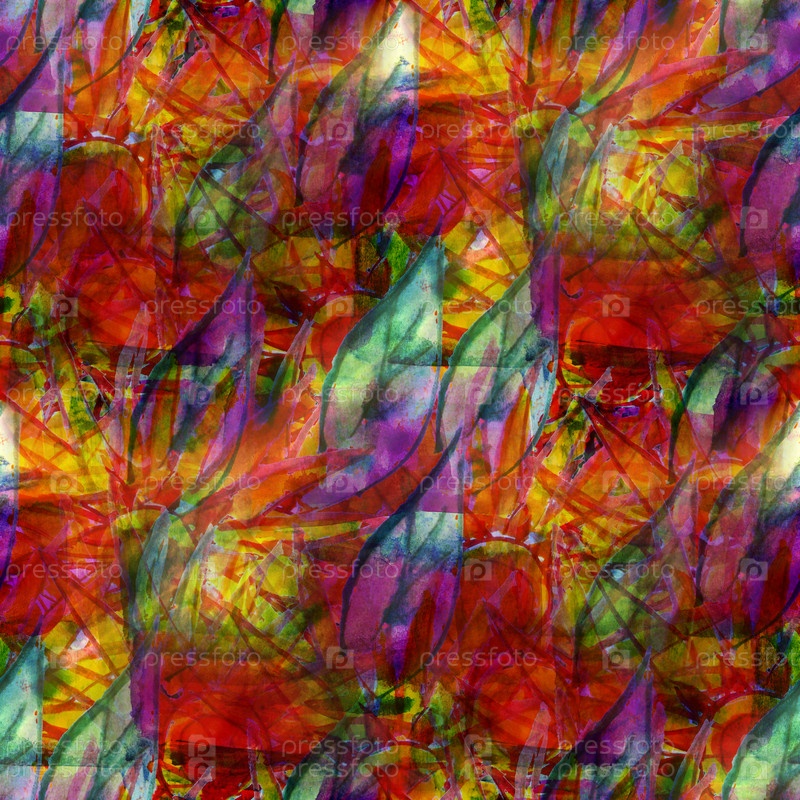 Красный, желтый, зеленый нарисованный бесшовный акварельный фон