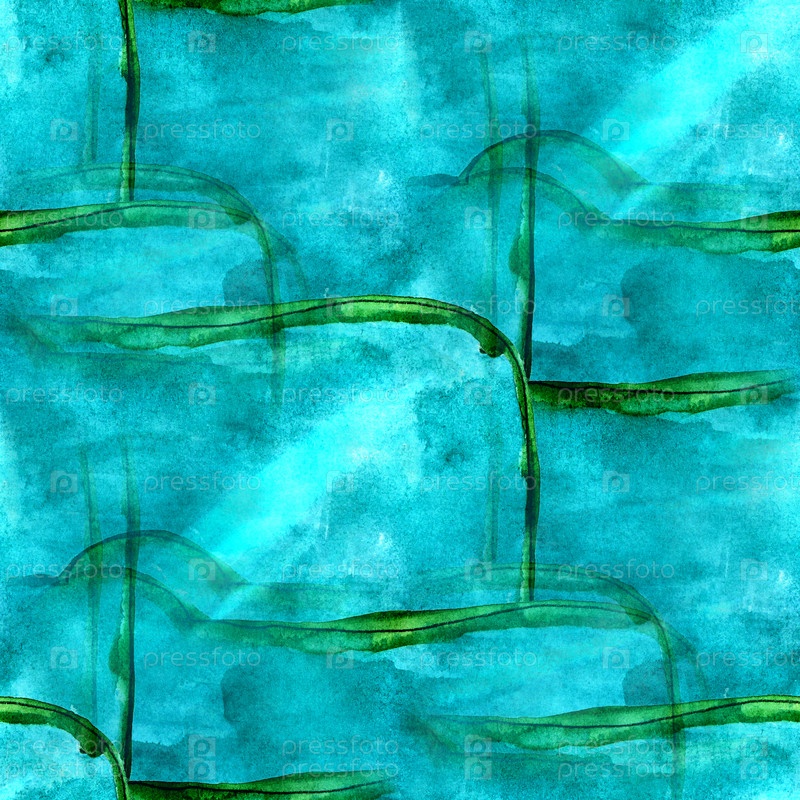 Синий, зеленый нарисованный бесшовный акварельный фон