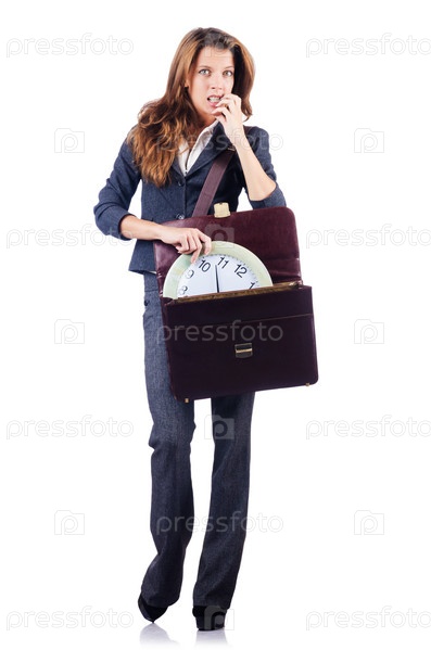 Женщина с часами, изолированная на белом фоне