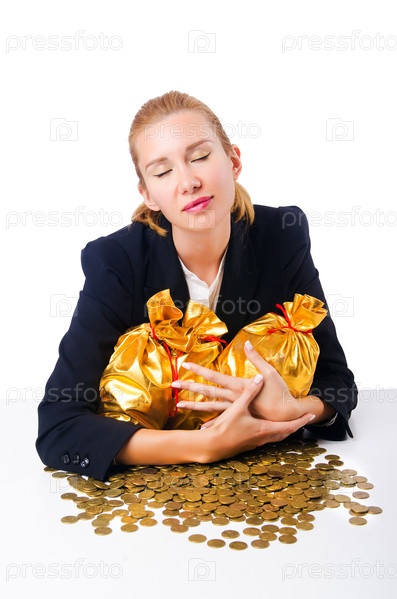 Женщина с деньгами, изолировано на белом фоне