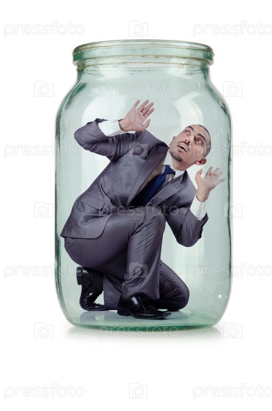 Молодой бизнесмен в стеклянной банке