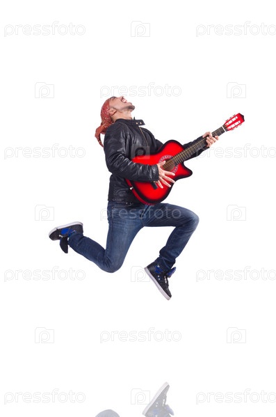 Гитарист, изолированный на белом