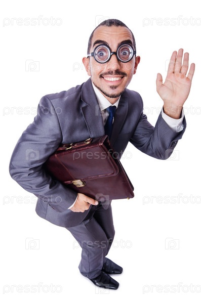 Смешной бизнесмен-ботаник, изолированный на белом
