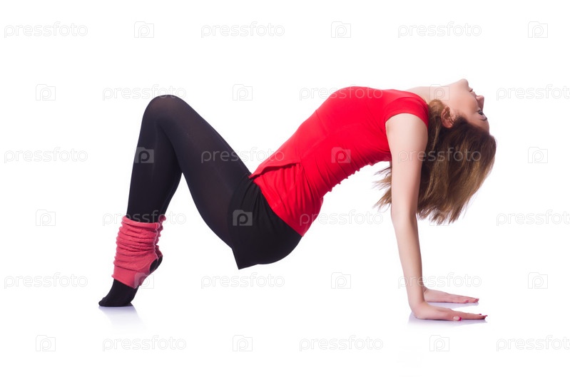 Молодая гимнастка на белом фоне