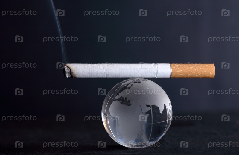 Дымящаяся сигарета за стеклянном глобусе