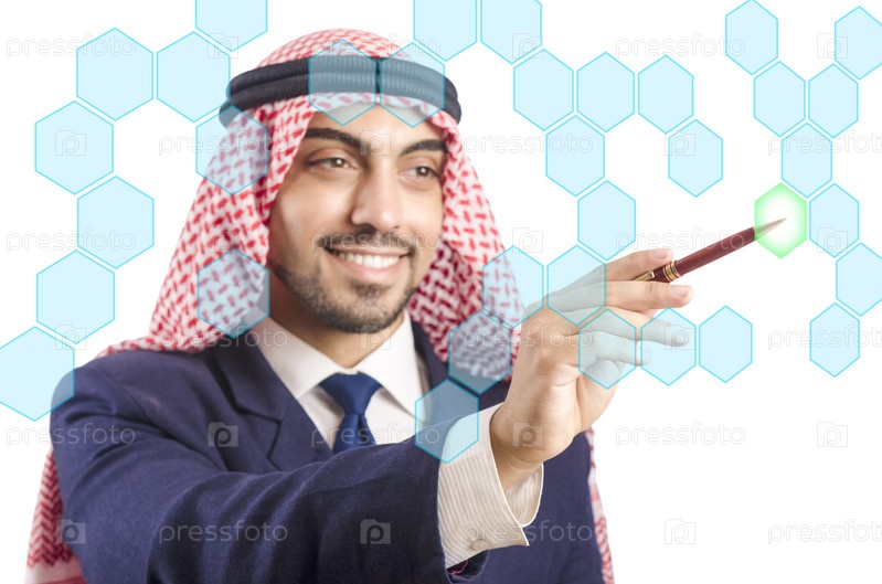 Араб нажимает на виртуальные кнопки