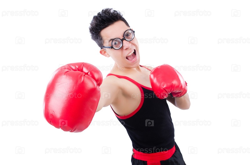 Смешной боксер, изолированный на белом фоне
