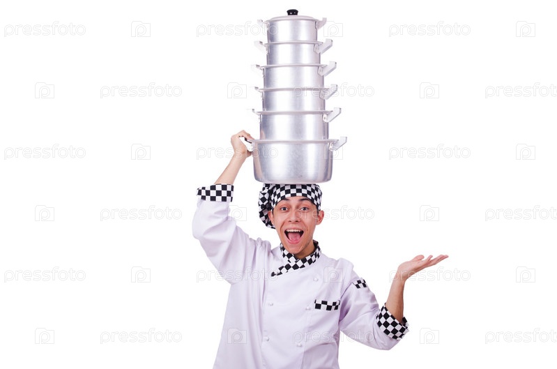 Повар с кастрюлями
