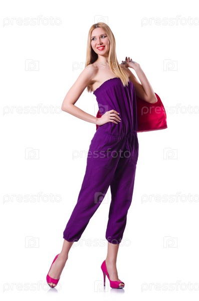 Молодая женщина готова для летних каникул на белом фоне