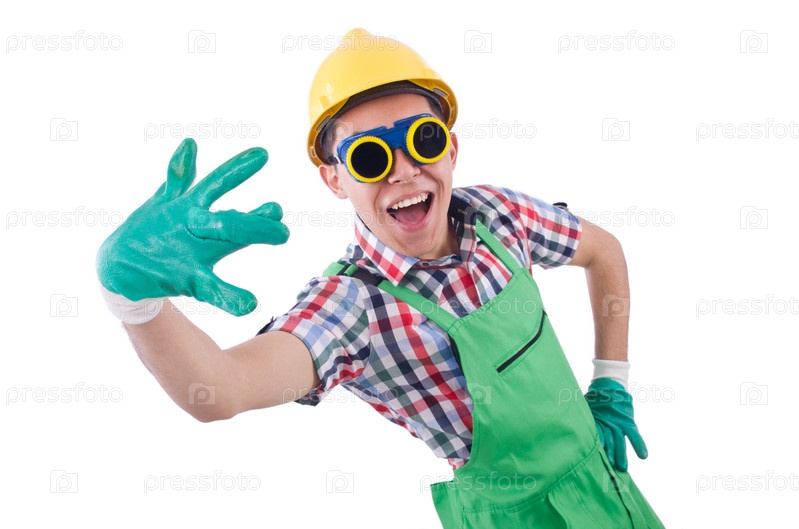 Смешной строительный рабочий, изолированный на белом фоне