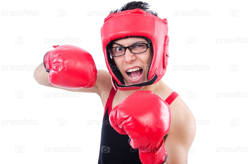 Смешной боксер, изолирован на белом фоне