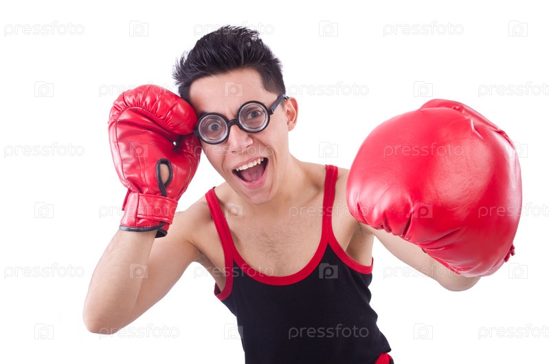 Смешной боксер, изолирован на белом фоне
