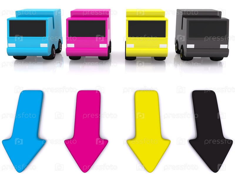 CMYK автомобили с стрелками. 3D