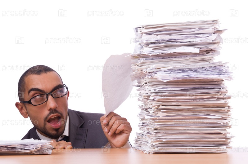 Занятой бизнесмен с большим количеством документов