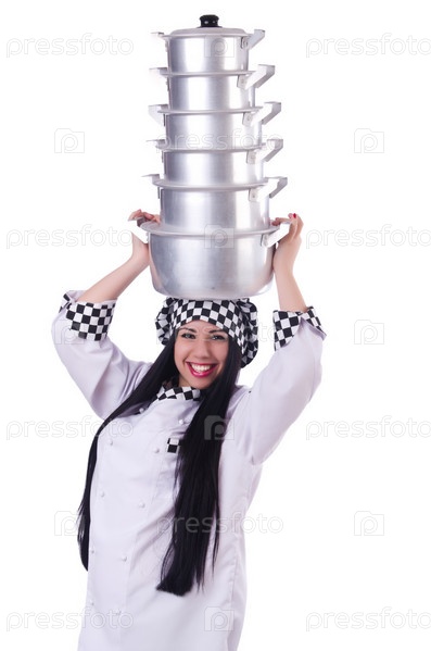Повар с кастрюлями