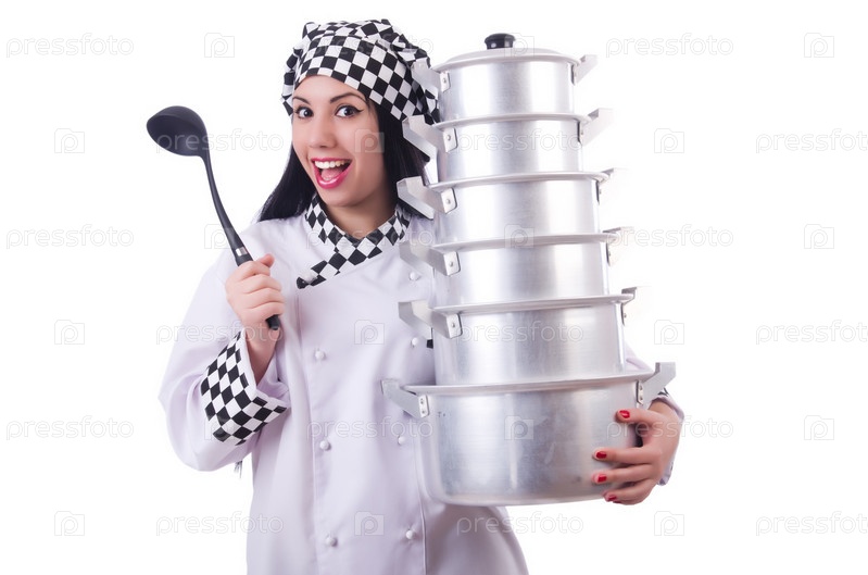 Повар с кастрюлями