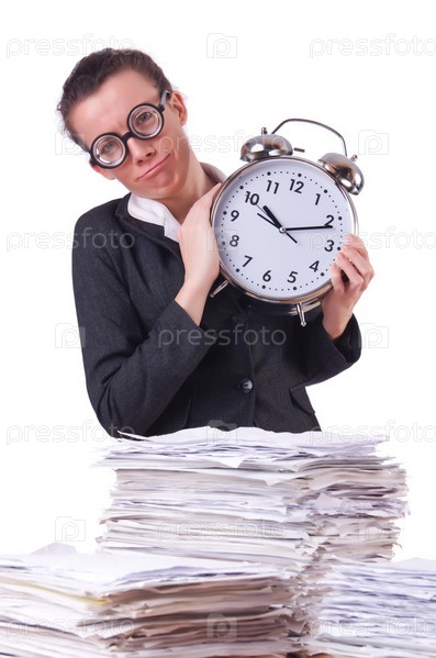 Женщина-предприниматель с гигантским будильником