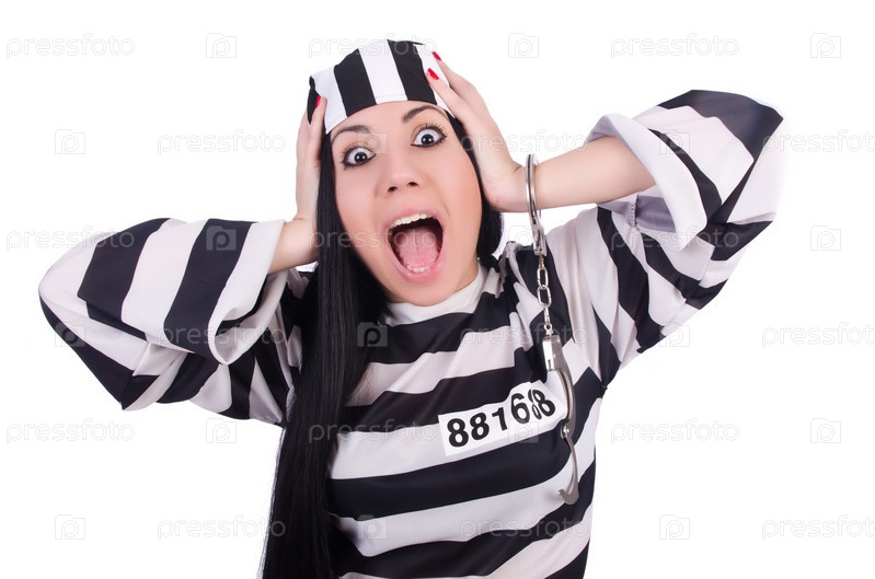 Заключенный в полосатой форме на белом фоне