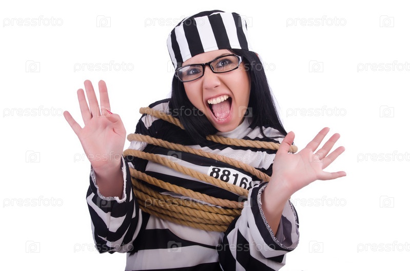 Заключенный в полосатой форме на белом фоне