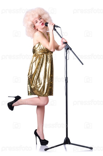 Поп-звезда с микрофоном на белом