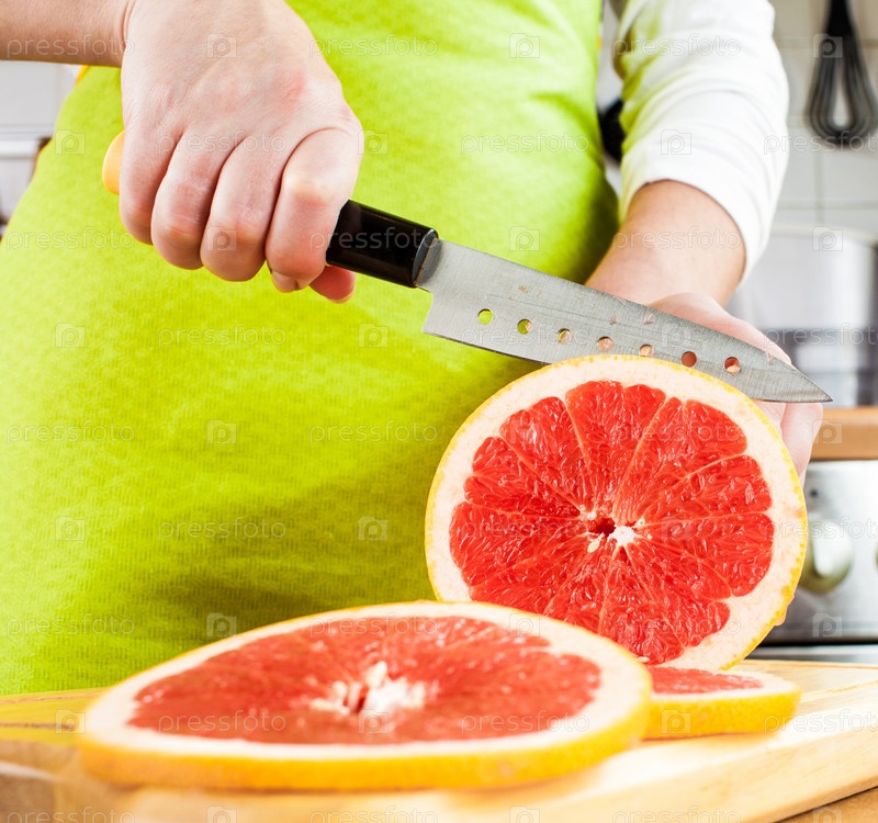 Женские руки режут грейпфрут