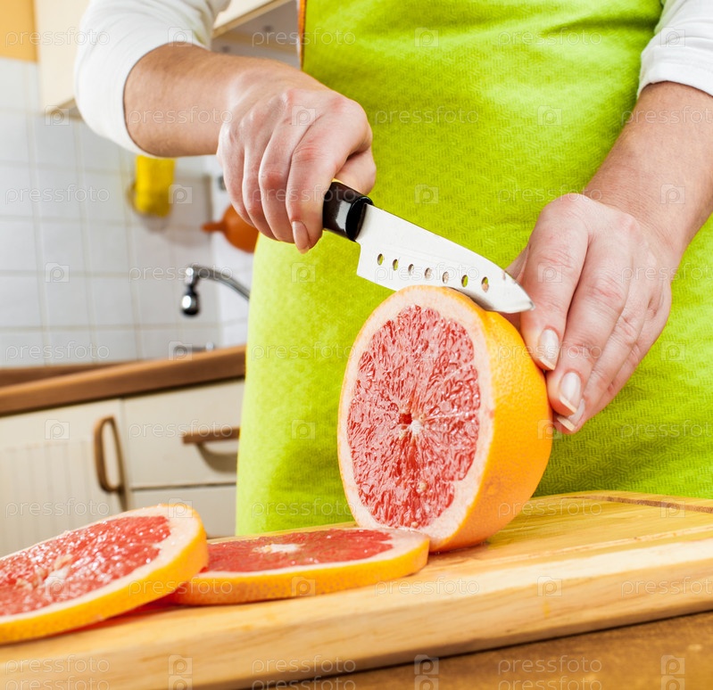 Женские руки режут грейпфрут