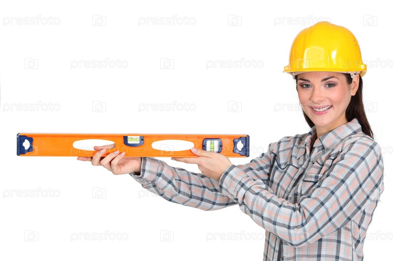 Девушка-рабочий с уровнем