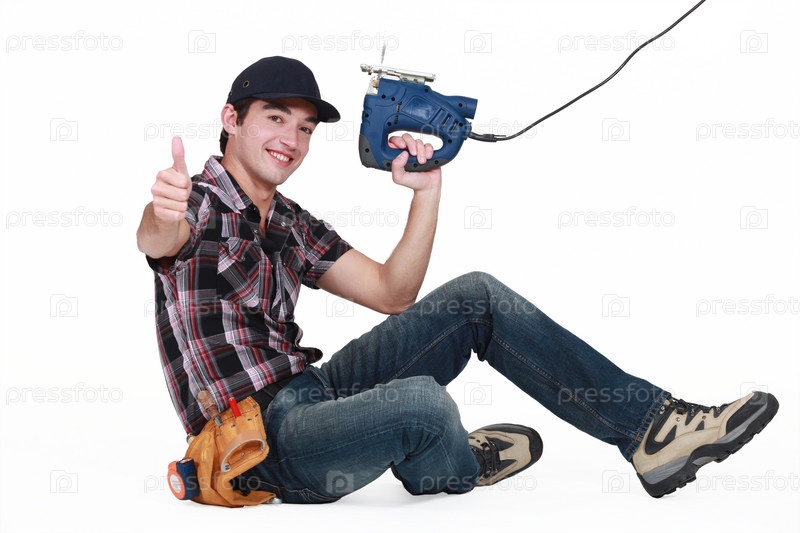 Молодой мастер показывает палец вверх