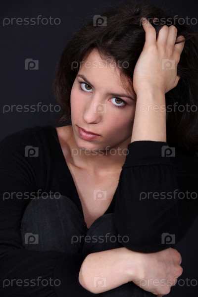 Молодая женщина смотрит грустно