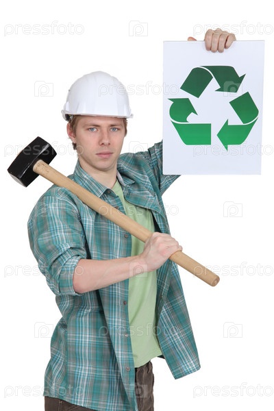 Строитель со знаком утилизации