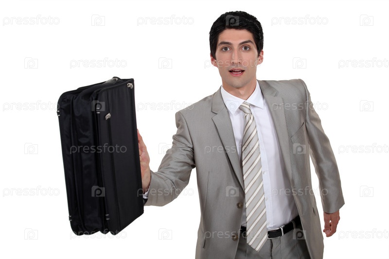 Бизнесмен с портфелем торопится на совещание