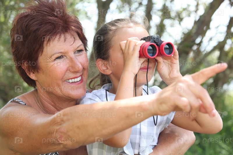 Бабушка и внучка с биноклем