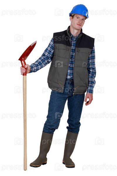 Строительный рабочий с лопатой