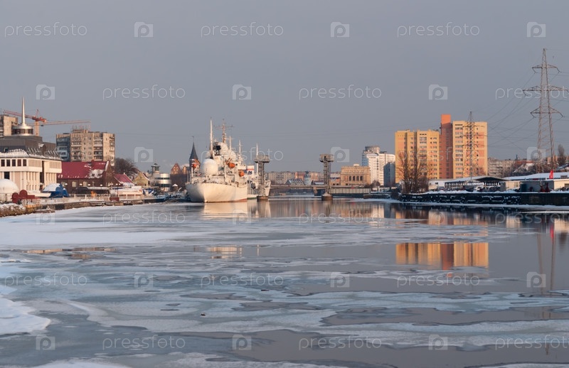 Вид реки Преголя в Калининграде, Россия