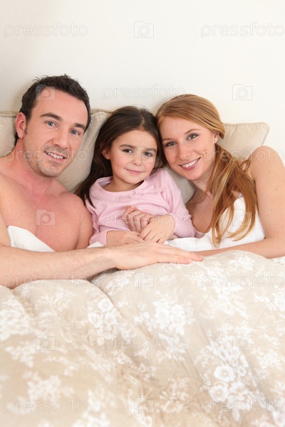 Пара с дочерью в постели