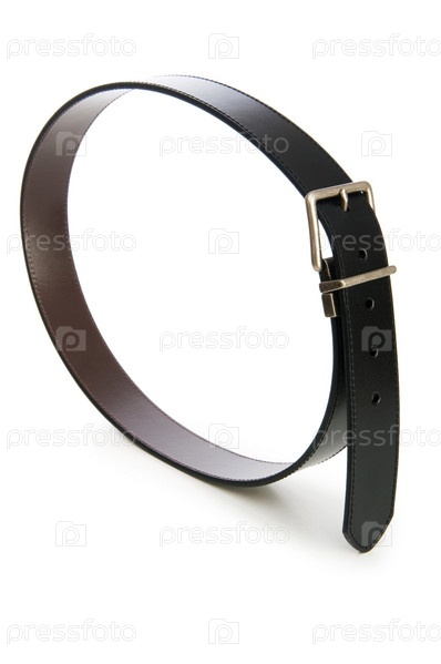 Черный кожаный ремень, изолированный на белом фоне