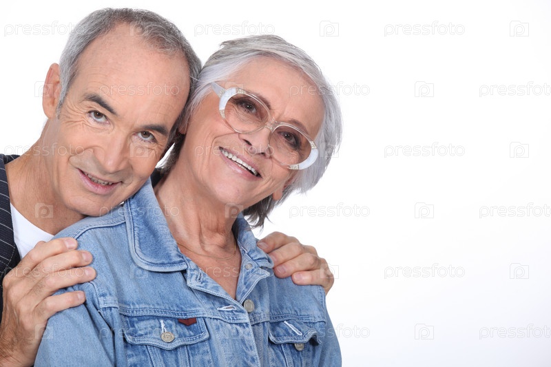Пожилая пара обнимается
