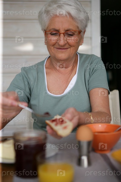 Пожилая женщина ест сбалансированный завтрак