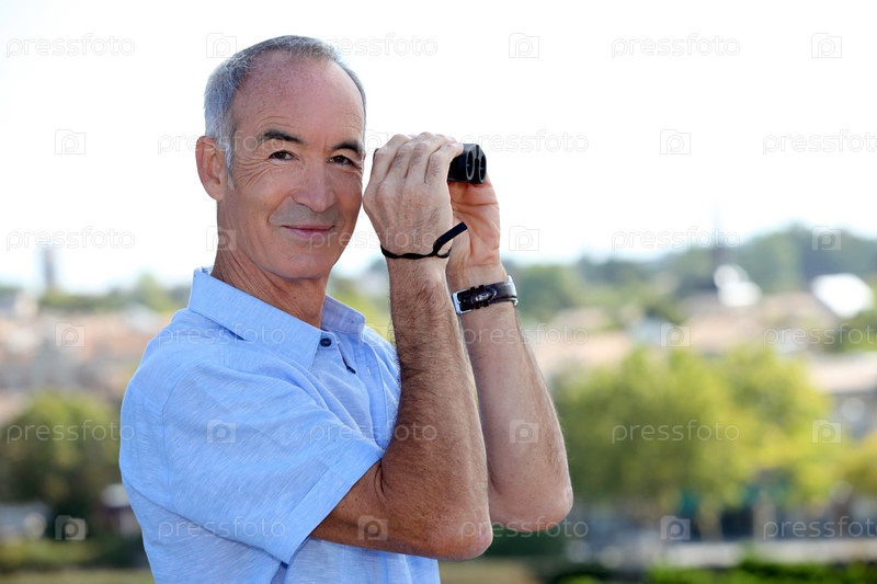 Пожилой мужчина с биноклем