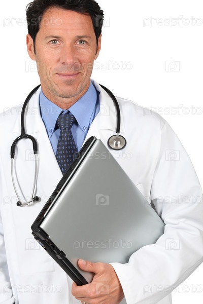 Доктор со стетоскопом и ноутбуком