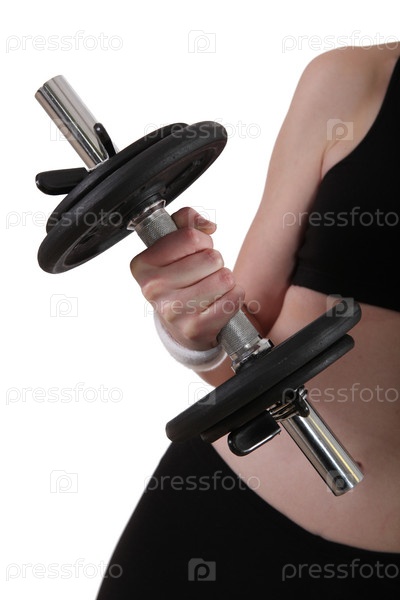 Женщина с гантелей