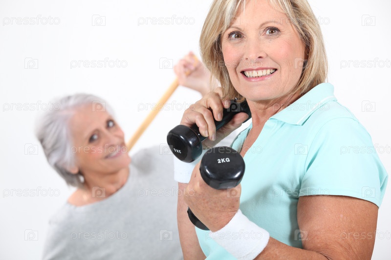 Две женщины среднего возраста занимаются спортоп