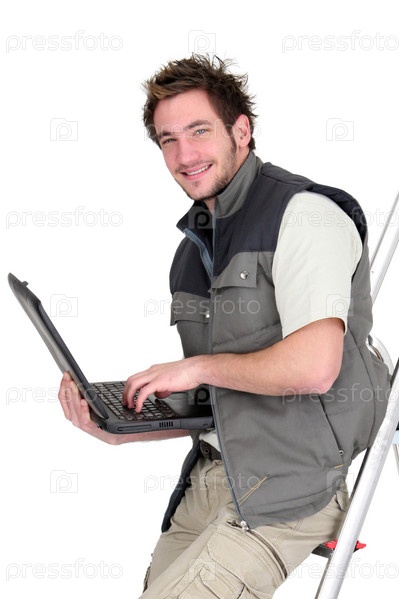 Кафельщик сидит на стремянке