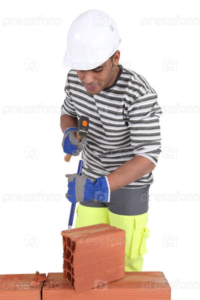 Каменьщик откалывает кирпич