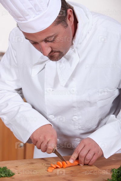 Шеф-повар режет морковь