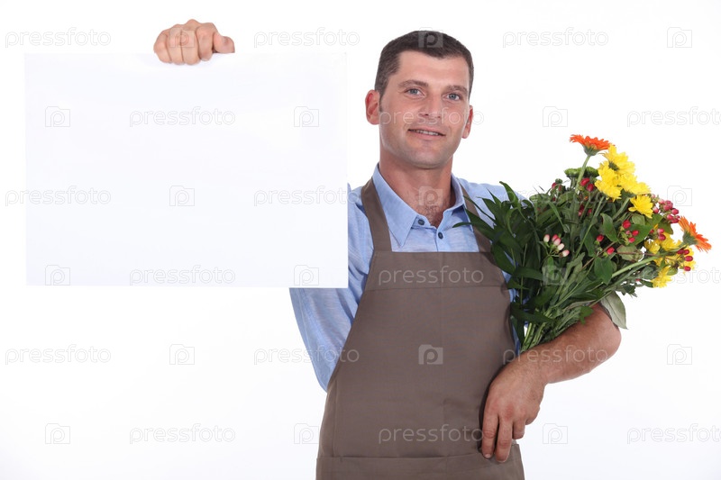 Мужчина-флорист с букетом цветов